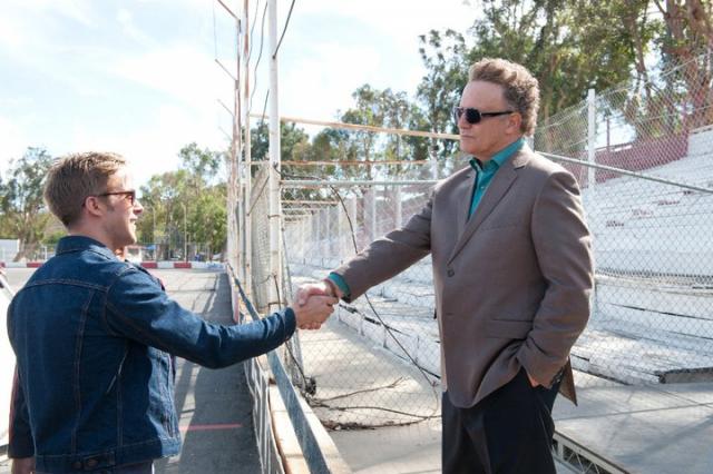 The allure of danger, whether in vast, open spaces, roadside diners, dingy motels, or on secluded highways, is aptly conveyed by a slew of crooked supporting players, for whom double-dealing is a way of life. Filthy, cold-blooded mobster Bernie (Albert Brooks), his brutish business partner (Ron Perlman), bold gangster moll Blanche (Mad Men's Christina Hendricks) and well-intentioned though misguided garage owner Shannon (Bryan Cranston) all meet their match somewhere down the road in Drive.