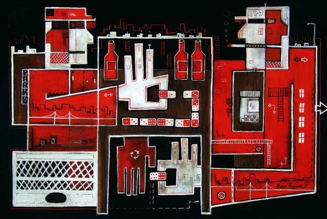 Strolling through New York neighbourhoods in the late nineties, you might have been caught by surprise, glancing up at the odd pair of wooden sneakers tossed over power cables. The Skewville Twins, aka brothers Ad and Droo, have spent the last decade dividing their time between their street ‘sneaker mission' and the gallery world, working on pieces tailor-made for the cityscape. These Queens natives, who recently celebrated their joint 80th birthday with a gallery retrospective, have always relied on their childlike energy to build a bona fide playground of skewed sculptures, paintings, prints and installations, using a variety of discarded materials and vintage toys.