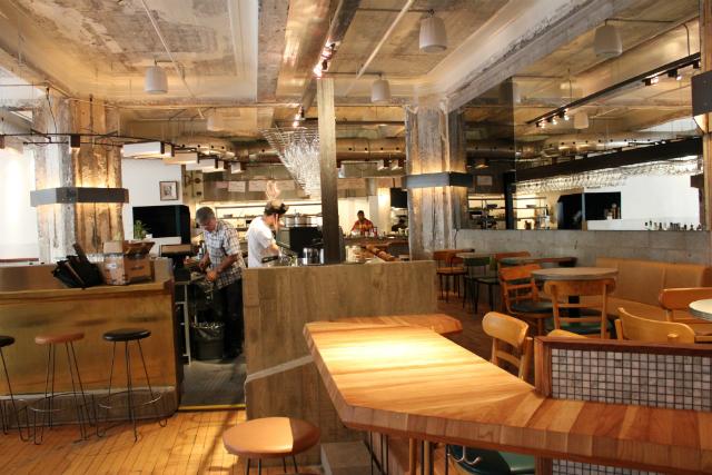 Tout d'abord, l'espace yest vraiment magnifique et lumineux. C'est le designer Zébulon Perron qui a vu tout le potentiel de cet ancien entrepôt de fourrures et qui a décidé d'en faire un bar avec six autres partenaires. Parmi ceux-ci, on compte entre autres Simone, de la Buvette chez Simone, Jean-François, qui vous a certainement déjà servi un verre au Baldwin où il a été gérant pendant 6 ans, et Joëlle, la chef, qui a déjà officié dans les cuisines de la Buvette.