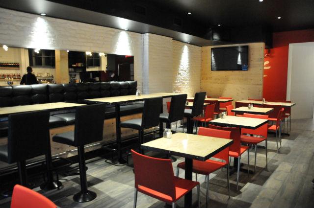 Le local de l'ancien restaurant Côté Soleil a été complètement réinventé par l'équipe sous l'oeil du designer Jean-Pierre Viau. Un décor simple, des lignes franches, un chaleureux coin en pierre (que les années 80 avaient camouflé derrière le stucco), un bar en bois massif, un plancher rustique et les murs rouges forment une ambiance conviviale, chaleureuse et sans flafla. Pour le reste l'ambiance ce sera l'affaire des clients «L'ambiance du resto sera déterminée par les gens qui seront à table. Moi quand je reçois chez moi, j'ai toujours une playlist en fonction des gens que je reçois. Ce sera pareil ici. On va s'ajuster», assure Stéphane.