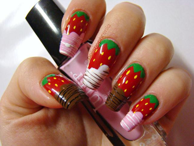 2-Tu veux donner faim à ta date chaque fois que tu gesticules? Opte pour cette manucure en forme de fraises trempées dans le chocolat. Fais attention à ce qu'il ne les mette pas dans sa bouche, car ça pourrait devenir weird assez vite… (via)
