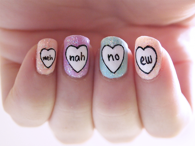 4-Tu es une anti qui ne veux rien savoir de cette supposée fête de l'amour? Célèbre à ta façon, avec ce design et ses coeurs aux messages plutôt non conventionnels. (via)