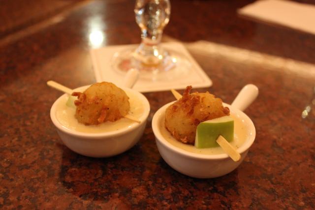 Lors de la soirée, on nous a fait goûter à quelques plats en format bouchée : thon ahi, bacon fumé, câpres, beurre blanc, fondue au fromage et à la lager, et bœuf angus. Je dois dire que les bouchées m'ont laissé de glace… Elles manquaient de goût et d'assaisonnement.