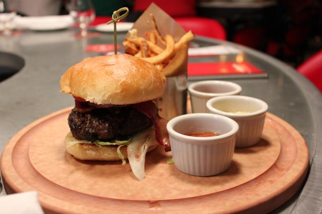 Pour accompagner l'importante sélection de bières offertes, on retrouve au menu: huîtres, charcuteries et fromages, flammekueches, steaks, hamburger, schnitzels, moules et frites. Fait intéressant: le chef exécutif de la chaîne, Michael Cipollo nous a raconté que pour adapter le menu aux Québécois, il était parti à la rencontre de producteurs de fromages et charcutiers d'ici. Un fait assez rare pour un chef corporatif!