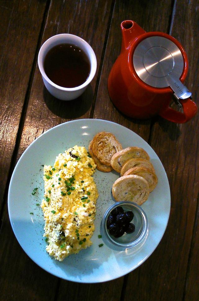 En recommandation personnelle j'affectionne particulièrement les œufs brouillés à la feta. Une petite assiette qui n'a pas plus de prétention que tout le reste des plats, mais qui se démarque par ses saveurs riches et concentrées. Une excellente alternative à sa concurrente, l'illustre omelette-fêta du toujours bondé Byblos, rue Laurier.