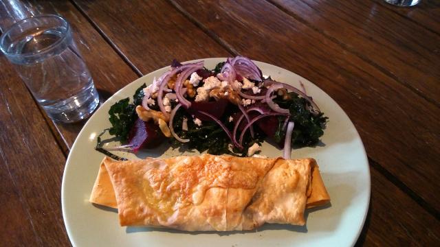 La salade de betteraves, noix de Grenoble, oignons rouges et chèvre est un autre bel exemple d'un plat tout simple qui est servi avec doigté. C'est délicieux, c'est frais et j'y reviens souvent. Ce jour-là, elle jouait le rôle de soutien d'un borek à la viande, mais vraiment, elle fait tout aussi bien l'affaire en solo.