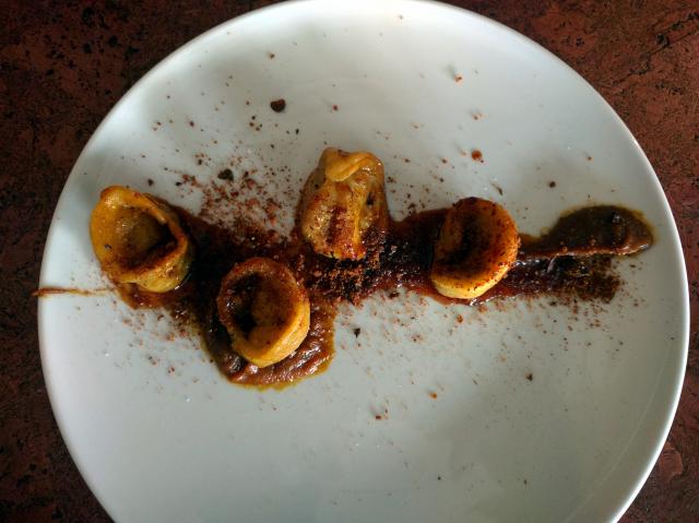 Le cappelletti de queue de bœuf est un spin sur les « soup dumplings »! Il y a de la sauce à l'intérieur des pâtes. Celle-ci est riche, légèrement fumée et crémeuse. La queue de bœuf fond en bouche. La portion est juste parfaite compte tenu de la richesse du plat.