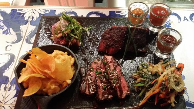 Mais ce n'est pas du tout l'ambition du chef et copropriétaire Dave (Struggle) Boudreau, qui a troqué la scène punk pour les fourneaux avec une touche tout à fait personnelle en cuisine, à la fois d'inspiration française, texane et voyageuse. « Faire ce que j'aime, c'est la force du resto, je pense ». Et ce que ce chef aime, c'est exalter les papilles avec des combinaisons tranchées de goûts et de textures, ainsi que remplir les estomacs à satiété. C'est donc en portions généreuses et, il faut le souligner, à des prix vraiment accessibles que les clients du bar-spectacle du sous-sol peuvent grignoter plusieurs variations de nachos, tandis qu'au restaurant du dessus, le menu décline les tartares, les viandes marinées et grillées, ainsi que les spécialités réconfortantes.
