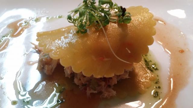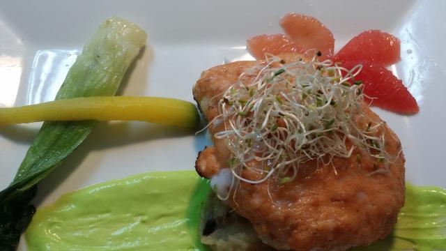 Et on peut aussi saluer cette assiette de morue, dans laquelle le chef Jean-Luc Peyrottes a travaillé les quatre principaux goûts (sucré, salé, acidité, amertume), grâce au mariage du filet de poisson avec du saumon fumé, du wasabi et du pamplemousse.