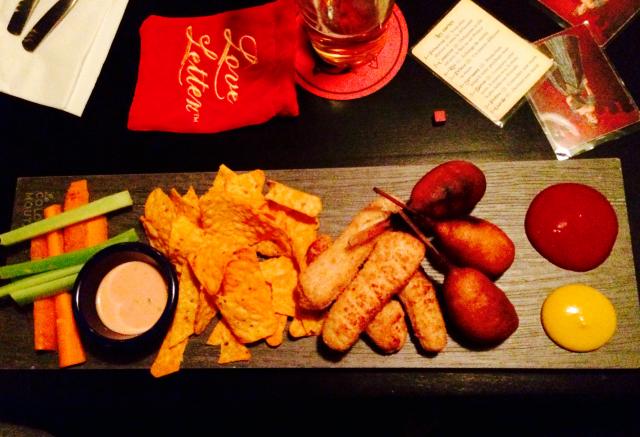 Pizza à l'indienne: légumes, pois chiches, cari, cheddar fort & sauce fraîche au yogourt lime/coriandre, 11$Ce soir-là, notre « ludomaître» (ou sommelier de jeu, c'est le dude qui passe de table en table pour nous expliquer les règlements finalement) nous a conseillé trois ou quatre jeux, et on a goûté à tout.