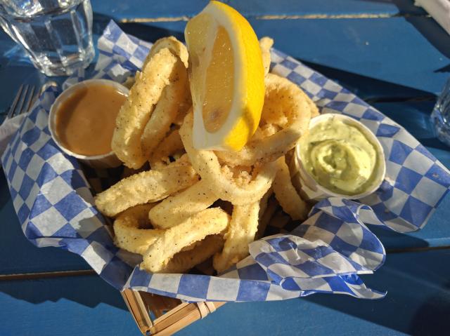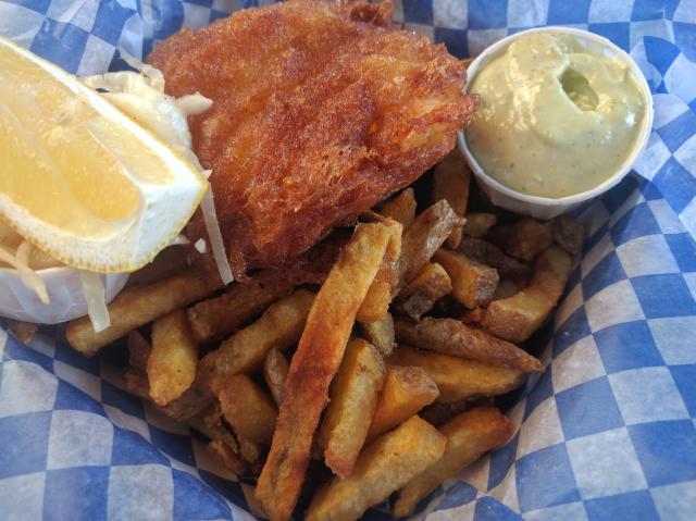 Le plat de fish 'n' chips respectait les règles de l'art. Un beau morceau de morue bien frais et surtout, cuit juste à la perfection. La chair se détache en gros flocons bien juteux. La panure est un croisement entre une panure traditionnelle épaisse et une autre à base de panko / farine de riz. Le résultat est une croûte mince, craquante et qui reste craquante tout au long du repas ! Les frites sont parfaites. Plus du genre frites brunes mais sans le côté très graisseux et surtout, avec un peu de croustillant.