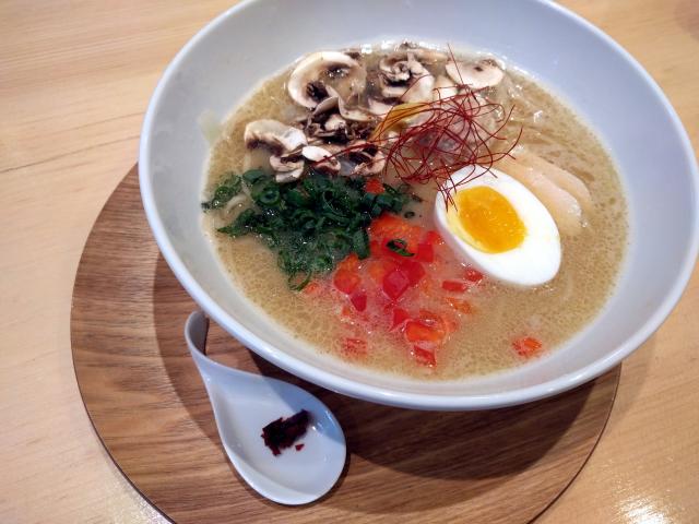Le nouveau classique est très similaire sauf qu'il contient des champignons blancs, des poivrons rouges ainsi que de l'oignon cru finement tranché. Le miso épicé apporte un certain kick au bouillon, mais il est difficile de bien l'intégrer dû à sa texture. Pour moi, le daku est le meilleur des deux.