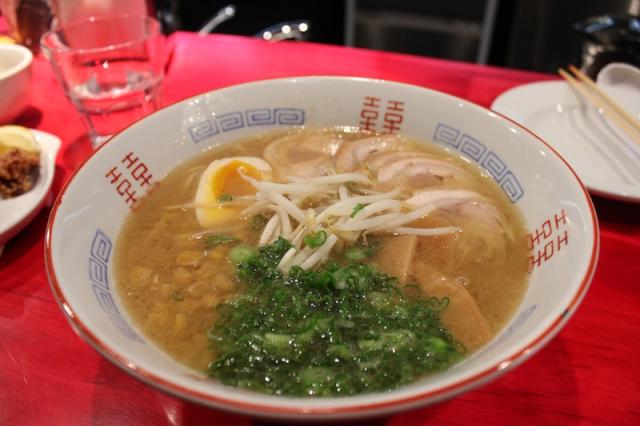 Le menu du Saka-Ba! est assez succinct. On y retrouve deux sortes de ramen : un au bouillon de porc et soya et un autre au bouillon de homard. Les deux sont garnis d'excellent porc brasé, d'échalotes, et de nouilles bien fermes de M. Goto. Cela dit, l'effet «wow» n'y était pas. On aurait aimé un peu plus de saveurs en bouche.