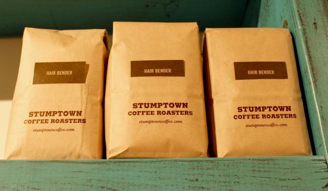Sur les présentoirs: des sacs de café Métropolis, une belle variété de thés, des viennoiseries ramenées directement du Névé, et surtout, le rare café Stumptown. J'observe les emballages du mélange Hair Bender, qui allie des grains d'Amérique latine, d'Afrique de l'Est et d'Indonésie à des méthodes rigoureuses de triage. Bref, on est loin du Tim Hortons. Ici, on privilégie plutôt un café préparé avec attention et une approche-client consciencieuse, afin de fidéliser les amateurs de liqueur noire pour la vie. Moi, j'ai été conquise dès ma première bouchée de biscuit au chocolat…