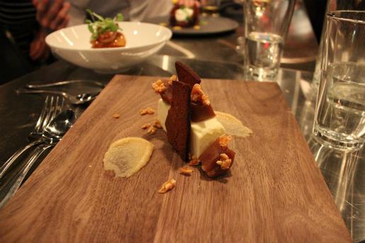 Les desserts ont été tout aussi surprenants et excellents. C'est toutefois la croustade aux pommes, servie avec une tranche de foie gras poêlé, qui s'est démarquée du lot. Le chef nous a raconté qu'il a créé cette petite merveille alors qu'il cuisinait pour Robert Parker (célèbre critique de vin américain) qui l'avait mis au défi de concocter un dessert qui accompagnerait bien un Château d'Yquem 84! Chez Projet 67, on ne vous servira toutefois pas la chose avec un verre du meilleur vin liquoreux au monde, mais avec un intéressant vin jaune conseillé par la sympathique sommelière.