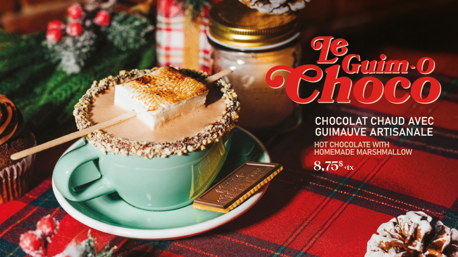 Pour accompagner cette métamorphose, l'équipe du Petit Dep a imaginé une création exclusive qui promet de séduire les becs sucrés : le Guim-O Choco. Un chocolat chaud décadent qui se distingue par sa texture riche et crémeuse, surmontée d'une guimauve artisanale flambée et d'une généreuse touche de dulce de leche. Le tout est servi dans une tasse au rebord chocolaté, décorée de brisures de biscuit. Une boisson aussi belle que réconfortante, parfaite pour se réchauffer après une balade enneigée dans les rues du Vieux-Québec.